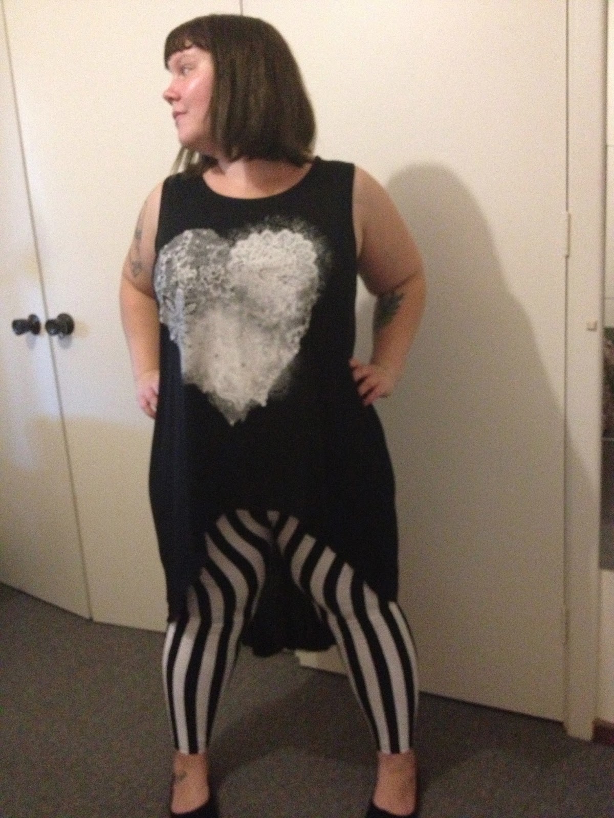 The stripe leggings are THE BEST. So fun. The whole outfit is pretty darn cute and fun. Nice job.